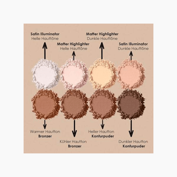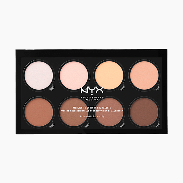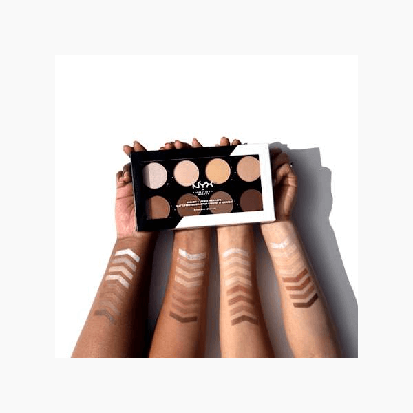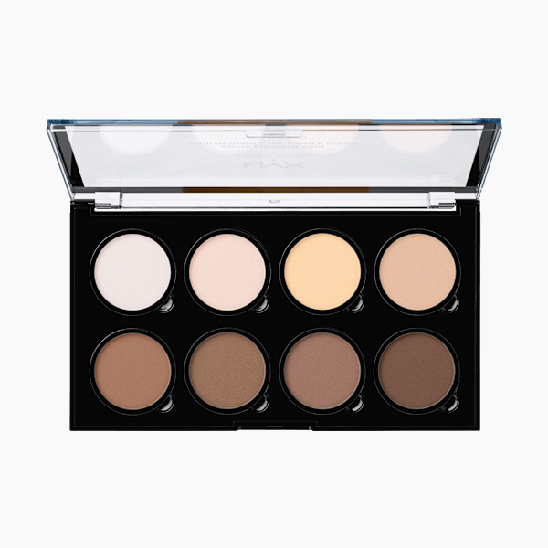 تجمع لوحة هايلايتر آند كونتورينغ باليت برو من نيكس بروفيشنال ميك أب وظائف كريم الأساس وخافي العيوب والهايلايتر في منتج واحد فريد. يمكن دمج الألوان الثمانية المختلفة بسلاسة، مما يتيح لك تحديد ملامح وجهك حسب رغبتك. بفضل قوامها الكريمي، يسهل وضع البودرة ومزجها.