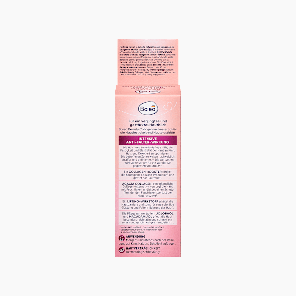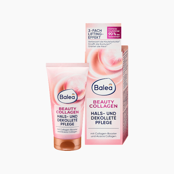 ضعي مستحضر Balea Beauty Collagen للعناية بالرقبة ومنطقة الصدر على الذقن والرقبة