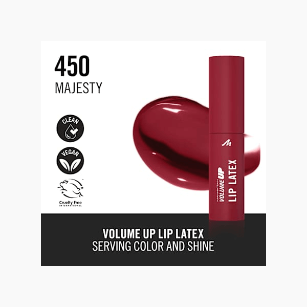 أحمر شفاه مانهاتن كوزمتكس فوليوم أب لاتكس، بدرجة 450 ماجيستي، يمنح الشفاه لمسة نهائية رائعة بلمسة لاتكس مكثفة. بفضل أداة التطبيق الماسية الشكل، يُسهّل التطبيق الدقيق والمتساوي. تركيبته غنية بالصبار وحمض الهيالورونيك وفيتامين هـ، مما يُرطب الشفاه ويُنعمها. للحصول على لون يدوم طويلًا، يترك أحمر الشفاه لمسة خفيفة بعد الاستخدام.