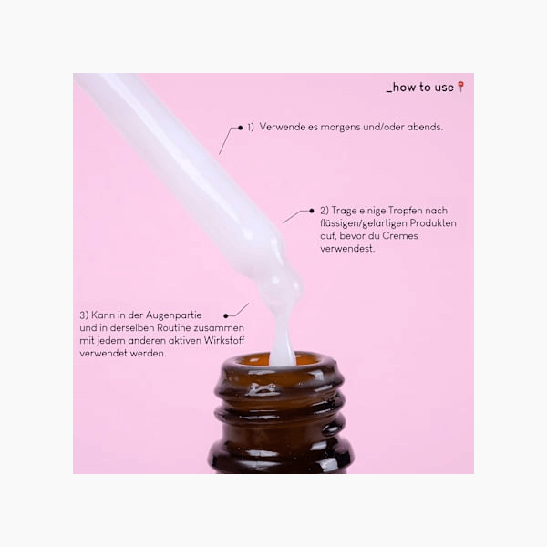 ضعي بضع قطرات على الوجه، بما في ذلك منطقة العينين، بعد التنظيف (وبعد استخدام المنتجات السائلة والجل)،