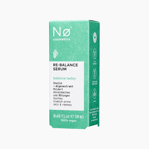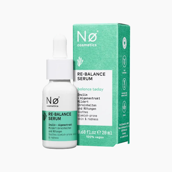 سيروم Nø balance today Re-Balance من Nø Cosmetics هو منتج للعناية بالبشرة مصمم لإعادة توازن الميكروبيوم الطبيعي للبشرة ومكافحة مشاكل مثل الاحمرار والبقع والتهيج. يحتوي على مياه معدنية بحرية نادرة من جزيرة نوارموتيه، ومستخلصات الطحالب، والإينولين في تركيبة تجميلية نظيفة ولطيفة على البشرة. يعمل السيروم على موازنة الميكروبيوم الطبيعي للبشرة، وتنظيم درجة حموضتها، ومكافحة البكتيريا الضارة مع دعم البكتيريا النافعة. تساعد تركيبته على تقليل الاحمرار والبقع والجفاف. السيروم نباتي، لطيف على البشرة، ولم يُختبر على الحيوانات.