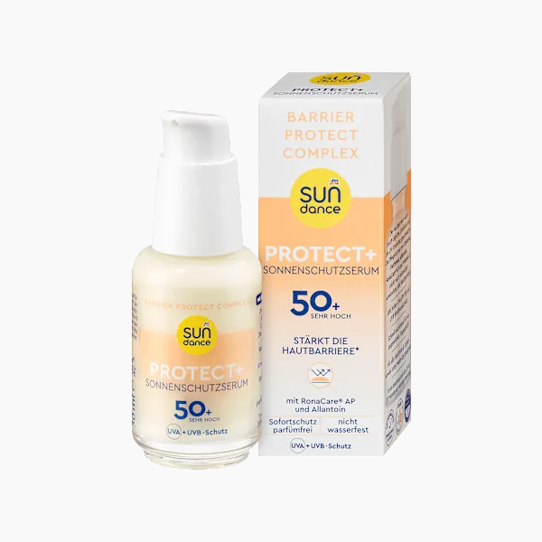 يعمل سيروم واقي الشمس UV Protect+ من SUNDANCE بعامل حماية SPF 50+ على تقوية حاجز البشرة. تركيبته المغذية الغنية بالجلسرين، والبانثينول، والألانتوين، وRonaCare AP، وفيتامين E، تقوي البشرة وتحميها. كما يوفر حماية عالية واسعة النطاق من الأشعة فوق البنفسجية UVA وUVB. يترك السيروم شعورًا لطيفًا على البشرة، وهو مناسب لجميع ألوان البشرة، ويمكن استخدامه كأساس للمكياج. تم اختبار توافقه مع البشرة من قبل أطباء الجلدية. حرصًا على البيئة البحرية، تم تركيبه بدون فلاتر الأشعة فوق البنفسجية مثل الأوكتينوكسات، والأوكسي بنزون، والأوكتوكريلين. نباتي.