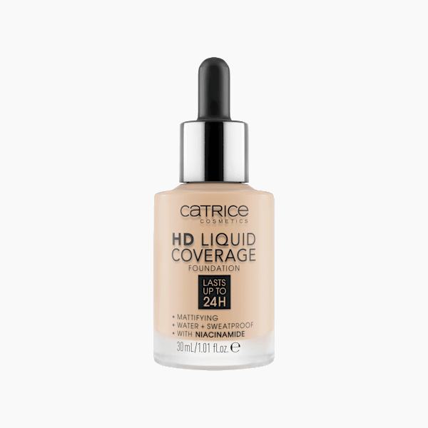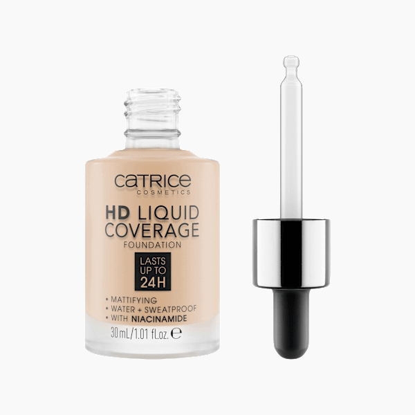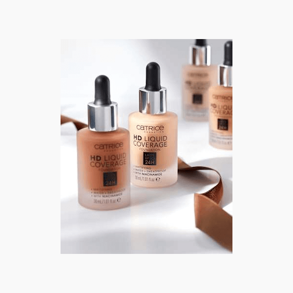 فونديشن كاتريس HD Liquid Coverage بدرجة بيج فاتح 10 يمنحكِ بشرة مثالية. قوامه الخفيف والسائل، بتغطيته العالية والطبيعية، يُخفي العيوب ويُضفي على البشرة مظهرًا طبيعيًا. يدوم حتى 24 ساعة.