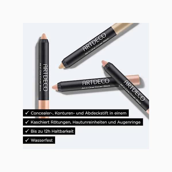 مع قلم خافي العيوب الشامل من ARTDECO بدرجة اللون 5 “وردة الصحراء”، يمكنكِ إخفاء الاحمرار والبقع وتشققات الشعيرات الدموية وحتى الهالات السوداء باحترافية. قوامه الكريمي وتصميمه العملي على شكل قلم يمنحكِ تغطية فائقة النعومة والدقة. تركيبة الكونسيلر عالية التغطية تنساب بسلاسة على البشرة، تاركةً تأثيرًا ناعمًا. تركيبته المقاومة للماء والتلطخ لا تتراكم في الخطوط الدقيقة، وتدوم حتى اثنتي عشرة ساعة على البشرة، لبشرة مثالية خالية من العيوب.