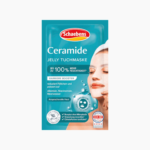 قناع جيلي سيراميد الورقي من شايبنز يُرطب البشرة بنسبة تصل إلى ١٠٠٪، يُقلل التجاعيد ويمنح البشرة مظهراً ممتلئاً.