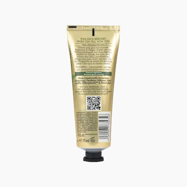 كريم اليدين من جان آند لين برائحة إكليل الجبل والزنجبيل الرقيقة مثالي لليدين المتعبتين والجافتين. بفضل تركيبته الخاصة الغنية باليوريا وحمض الهيالورونيك، يلبي احتياجات البشرة تمامًا، ويمنحها شعورًا بالتغذية. غني بزبدة الكوبواسو وفيتامين هـ، يمتصه الجلد بسرعة. خالٍ من الجزيئات البلاستيكية الدقيقة، والزيوت المعدنية، والبارابين، والبارافينات، والأصباغ، والسيليكون، وبتركيبته النباتية، يُعد خيارًا شائعًا.