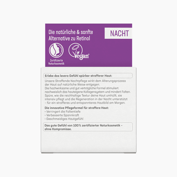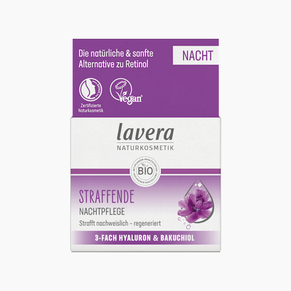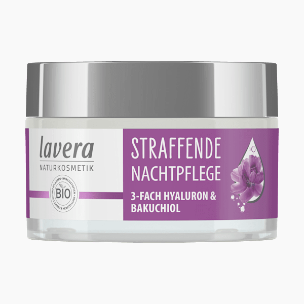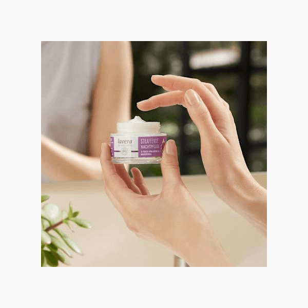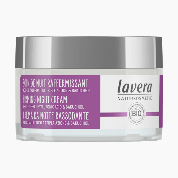 كريم لافيرا الليلي لشد البشرة، بحمض الهيالورونيك الثلاثي ومكونه الفعال الباكوتشيول، يُكافحان شيخوخة البشرة بشكل طبيعي.