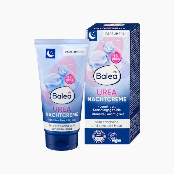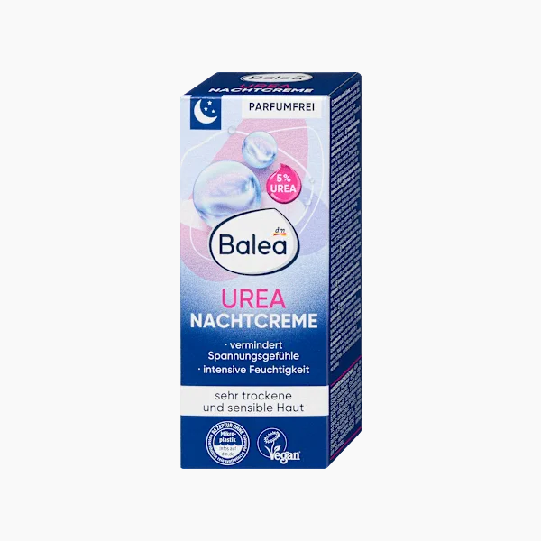 كريم باليا الليلي باليوريا مُصمم خصيصًا لتلبية احتياجات البشرة شديدة الجفاف والحساسة. بفضل احتوائه على 5% من اليوريا وفيتامين هـ والبانثينول، يُوفر ترطيبًا مكثفًا. تعمل اليوريا على الاحتفاظ بالماء وتجديد البشرة طوال الليل. يُقلل الكريم بشكل ملحوظ من الشعور بالشد والاحمرار، بينما تضمن تركيبته الخالية من العطور شعورًا لطيفًا على البشرة. مثالي لبشرة ناعمة ومُعتنى بها في الصباح. تركيبة خالية من الجزيئات البلاستيكية الدقيقة والبوليمرات الاصطناعية القابلة للذوبان في الماء.