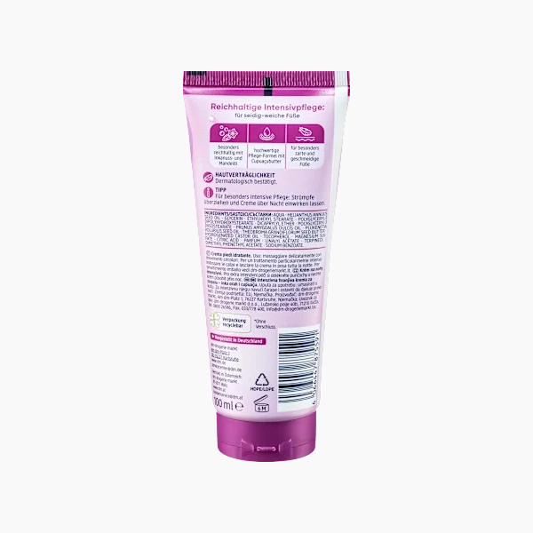 دلكيه بلطف بحركات دائرية. للعناية المكثفة: ارتدي جوارب واتركي الكريم طوال الليل.