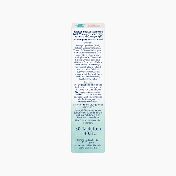 المكونات: هيدروليزات الكولاجين (بقري)، عامل تعبئة فوسفات ثنائي الكالسيوم، فيتامين سي، عامل مضاد للتكتل، كربوكسي ميثيل سلولوز متشابك،