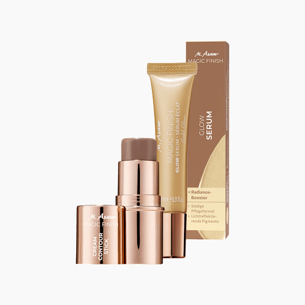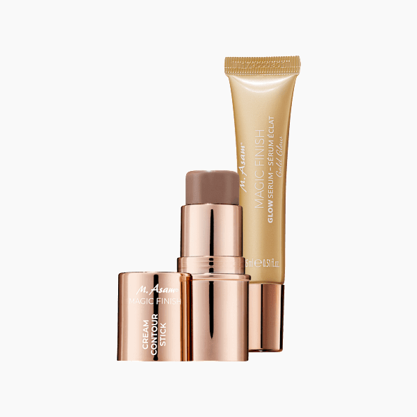 يتكامل سيروم جولد جلو من إم. آسام وكريم كونتور ستيك بشكل مثالي لإطلالة مشرقة ومحددة. يمنح السيروم، بأصباغه العاكسة للضوء ومركب ببتيد الماس، البشرة إشراقة آسرة. وفي الوقت نفسه، تُغذي تركيبته الغنية بالألوفيرا والبانثينول والزيوت النباتية البشرة. أما كريم كونتور ستيك، بقوامه الكريمي سهل الدمج، فيرسم ملامح معبّرة وينحت الوجه بدقة. كلا المنتجين متعدد الاستخدامات، ويخلقان تناغمًا متناغمًا بين الإشراقة والتحديد.