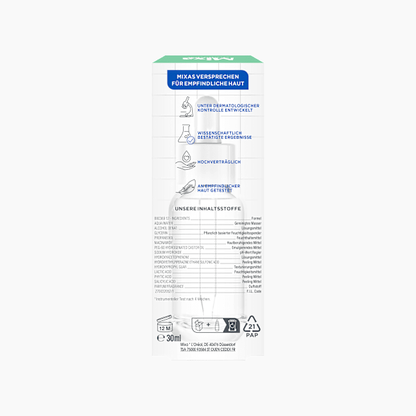 مستحضر أساسي لتنظيف الوجه يوميًا. صُمم سيروم ميكسا المضاد للشوائب خصيصًا للبشرة المعرضة للشوائب.